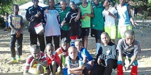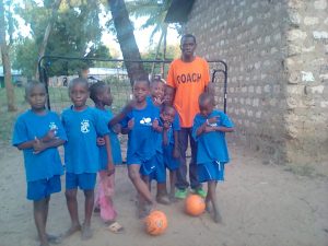 bei Ukunda / Kenia mit Trainer Kura Mwakulala und derzeit 55 Kindern und Jugendlichen